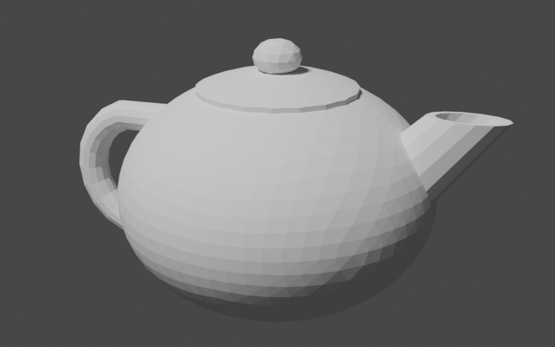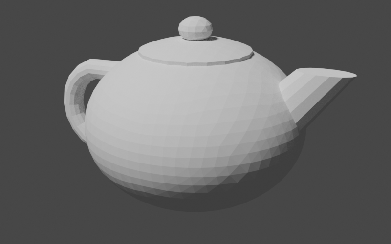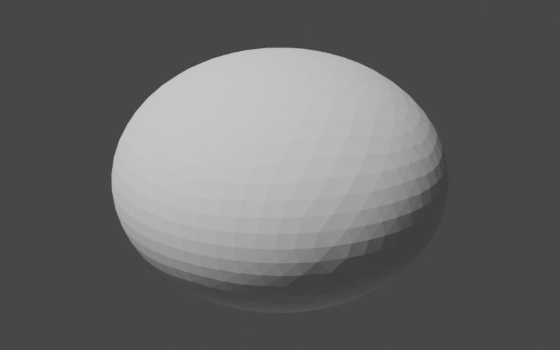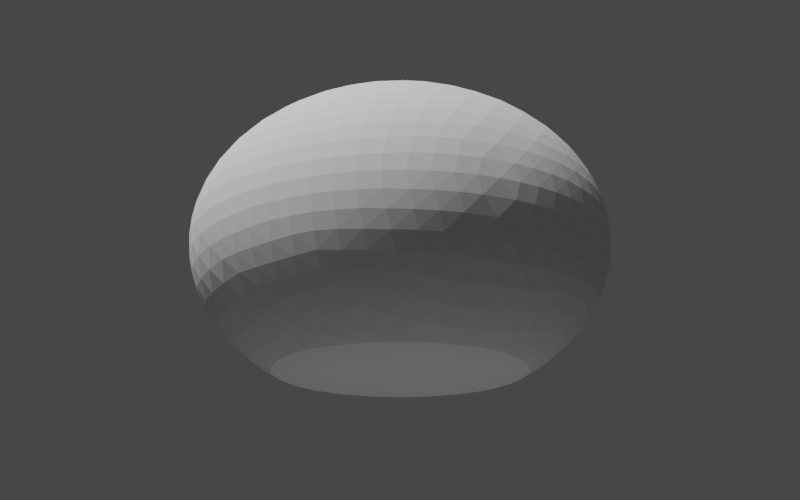 }Unlike some fancier types you might see, our teapot is going to have a simple, rounded body. So, we will start by creating a sphere and go from there. Luckily, Commons Geometry provides a Sphere class to help us. Sphere sphere = Sphere.from(Vector3D.ZERO, 1, precision); We now have a Sphere instance centered on the origin with a radius of 1. However, our instance represents an analytic sphere, meaning it is does not contain any flat surfaces. This is great for many use cases, but we need flat surfaces in order to construct a BSP tree. To convert from our mathematically perfect sphere abstraction to a BSP tree sphere approximation, we will use the Sphere.toTree() method. This method accepts a single argument that determines the number of facets that will be used in the approximation. The documentation explains the details of the conversion. For our purposes, we will use the argument 4, which will give us a BSP tree with 2048 facets. Sphere sphere = Sphere.from(Vector3D.ZERO, 1, precision); RegionBSPTree3D body = sphere.toTree(4); This finally gives us something we can look at in our 3D modeling program.
