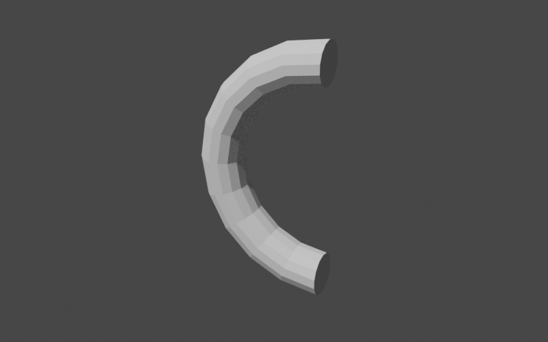 The HandleConstructing the handle of our teapot is going to be something of an adventure; not only will we need to apply scaling and translations to our starting geometry, we will need to interpolate between a range of 3D rotations. In this case, perhaps it would be best to see the end product first before we jump into the details. That will give us a frame of reference for what we're working toward. Below is our goal for the handle.