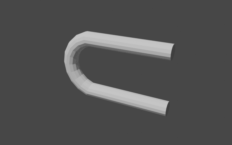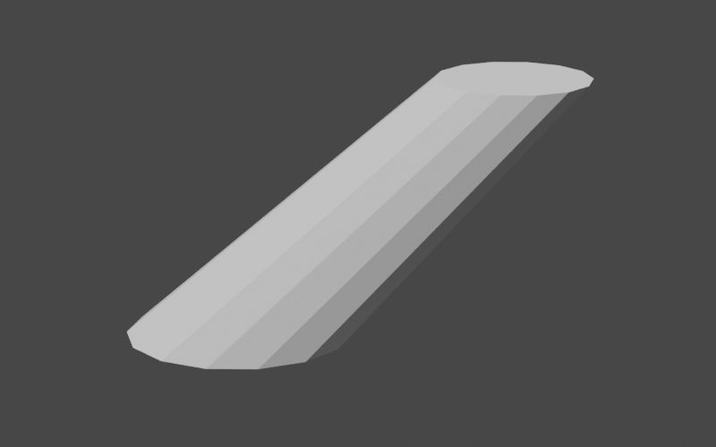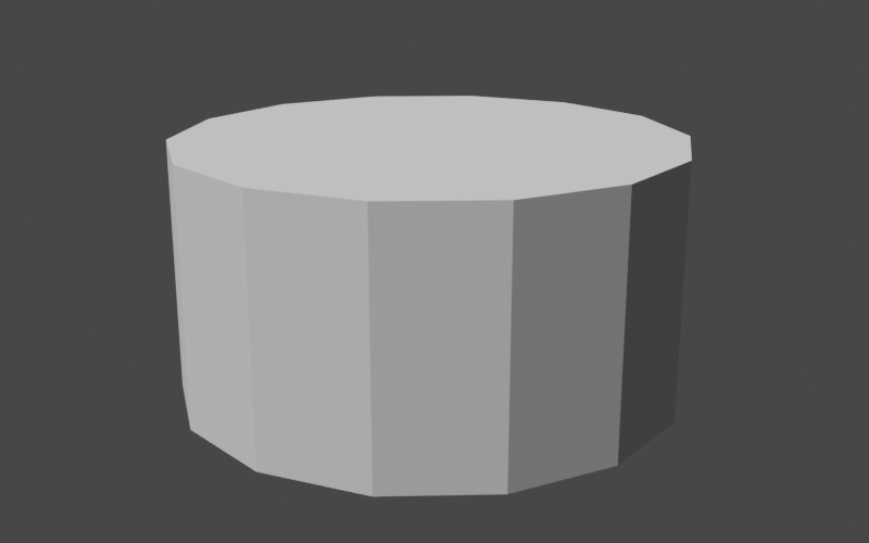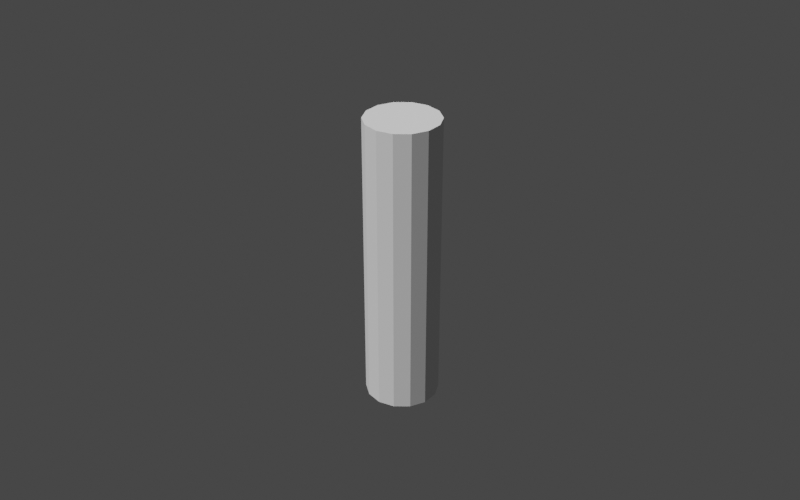 }We now have the start of our handle in place. Note that we've used a larger number of cylinder segments (14) so we have enough to smoothly curve the shape. Since we're not modifying the shape of the cylinder yet, our handle looks like this.