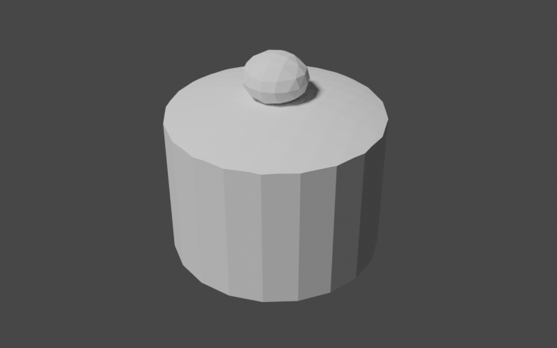 The fact that the lid is extremely thick does not matter for our purposes. We will be merging it with the teapot body soon and the lower portion will simply become part of the body. All that's left now is the small rounded handle on top of the lid. We've already done something similar for the body so this should be simple. The only difference from before is that we will be using the axis-aligned bounding box of the lid to help place the handle in the correct location.
